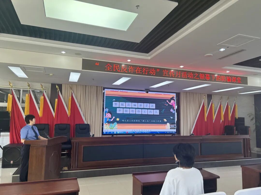 在这个信息爆炸的时代,电信网络诈骗如影随形,严重威胁着公众的财产安全与心理健康,尤其是青少年群体,更易成为不法分子的目标。为积极响应国家关于加强防范电信网络诈骗宣传的号召,提高在校学生的自我保护能力和防骗意识,喀左县检察院“娜仁花”未检工作室精心策划并成功举办了《“全民反诈在行动”宣传月活动之银幕下的防骗课堂》活动,旨在让学生们在轻松愉快的氛围中,学会识别诈骗陷阱,坚决不做电诈的“工具人”。