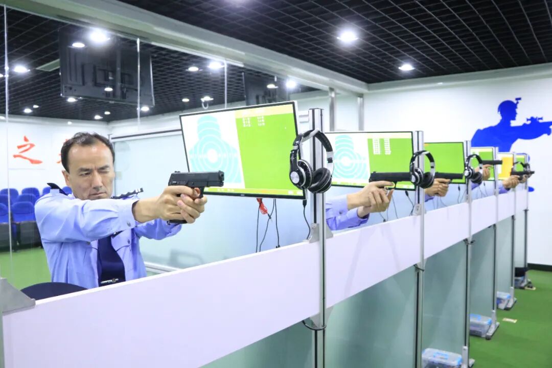参训司法警察骨干练习射击技能。