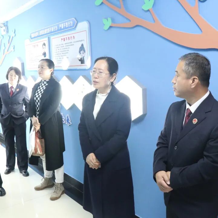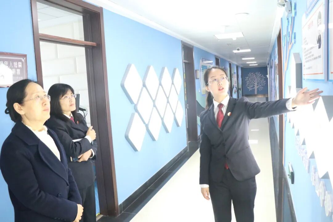在喀左县人民检察院“娜仁花”未检办案区,调研组实地参观了未检专用办案区的功能设置和使用情况,通过检察干警的讲解,详细了解未成年人检察办案流程、未成年人权益保护举措以及检察服务便民化建设等,对检察院专业化、人性化的未检工作环境和设施给予充分认可。