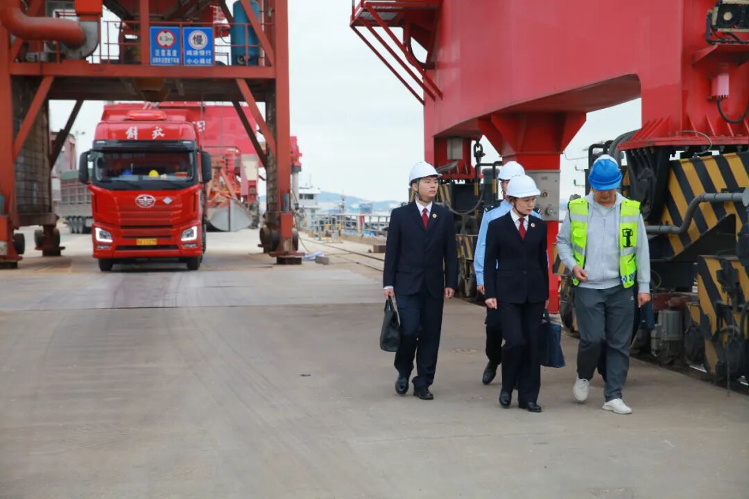 10月13日,办案检察官到长江沿岸卸货码头走访相关企业、开展普法宣传,增强长江物流领域企业的防范、监管意识。